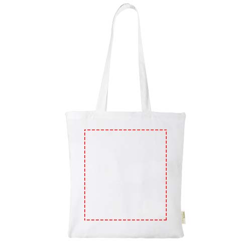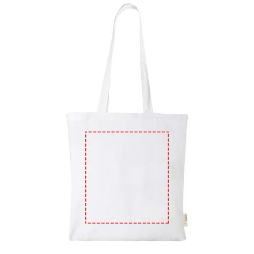 Tote bag with a large open main compartment, providing plenty of space to carry around all the essentials. The 32 cm long handles makes it comfortable and easy to carry around with you wherever you go. This tote bag is made in India with 140 g/m² organic cotton and is OEKO-Tex certified. Resistance up to 5 kg weight.