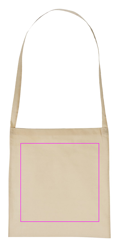 Ostosklassikko! Luonnonvärinen puuvillalaukku, jossa yksi pitkä kahva. Tukeva materiaali, joka on tietysti pestävä, tekee siitä pysyvän kumppanin asiakkaallesi. Isolla edessä on riittävästi tilaa logollesi, jonka painamme silkkipainatuksessa. Jokainen lisäväri 50% seuraavasta painohinnasta. Asennuskustannukset ovat värikohtaisia.