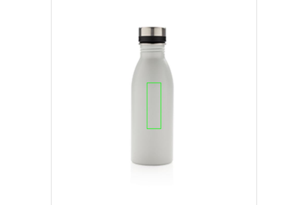 Tämä täydellisenkokoinen ja kevyt, uudelleen käytettävä pullo on valmistettu kestävästä, ruostumattomasta teräksestä. Tiivis ja täydellinen jokapäiväiseen käyttöön nestetasapainon ylläpitämiseksi. Suositellaan vain kylmälle vedelle. Monissa eri väreissä. Luonnonvalkoisen värinen pullo on PMS-värissä Cool Grey 1. Sisältö: 500 ml.