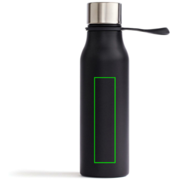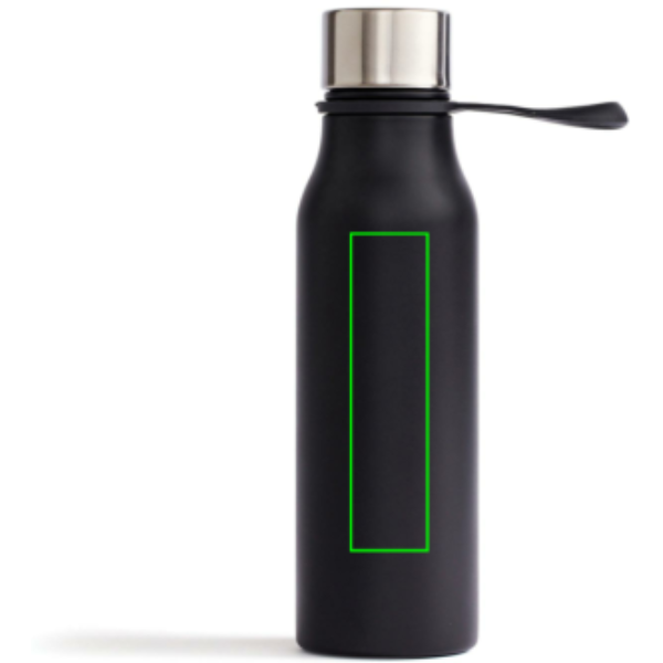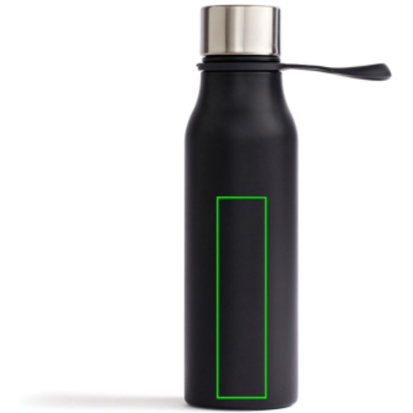 Ruostumattomasta 18/8 teräksestä valmistettu tyylikäs termospullo pitää kylmät juomat pitkään kylminä ja kuumatjuomat kuumina. Materiaali takaa sen, että nesteisiin ei liukene haitallisia kemikaaleja tai makuja. Sitä on kätevä kantaa trendikkäästä silikonilenkistä tai ripustaa laukkuun tai pyörän tankoon. Pullo sopii normaaleihinmukipidikkeisiin. Vain käsin pestävä.