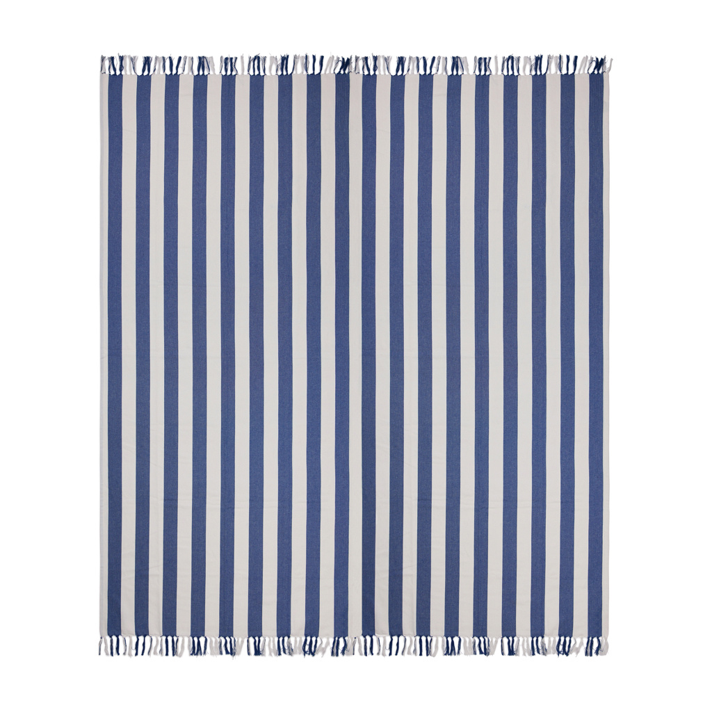Tässä perheen yhteisessä hammam-rantapyyhkeessä on klassinen kaksivärinen raidallinen kuvio ja hapsut lyhyillä sivuilla. Reilun 180 × 180 cm kokonsa ansiosta se sopii erinomaisesti jaettavaksi läheisten kanssa, olitpa sitten rentoutumassa rannalla tai altaan reunalla. Kevyt ja ilmava 200 g/m² sekoitemateriaali yhdistää puuvillan mukavuuden ja polyesterin nopean kuivumisen edut. Sertifioitu GRS-standardin (Global Recycled Standard) mukaisesti. GRS-sertifiointi takaa, että koko kierrätysmateriaalien toimitusketju on sertifioitu. Kierrätetyn materiaalin kokonaisosuus perustuu tuotteen kokonaispainoon. Tämä tuote sisältää 70 % GRS-sertifioitua kierrätettyä puuvillaa ja 29 % GRS-sertifioitua kierrätettyä polyesteriä.