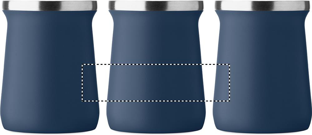 Kaksiseinäinen yerba mate -muki kierrätetystä ruostumattomasta teräksestä (90 % kierrätettyä terästä ja 10 % terästä). Mukana teräspilli ja puhdistusharja. Tilavuus 240 ml.