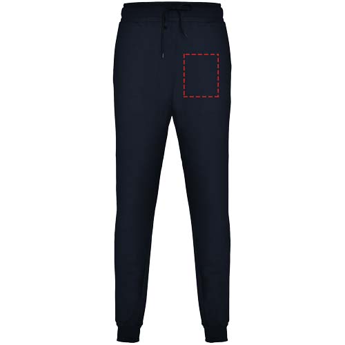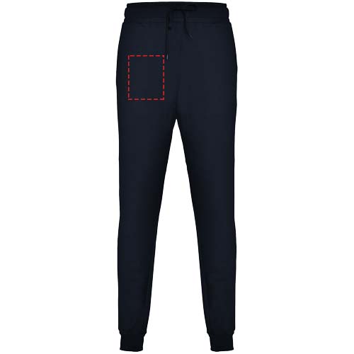 Sportinės kelnės su plačiu reguliuojamu juosmeniu, raišteliu, prigludusiais rankogaliais ant kojų, sustiprintomis siūlėmis, šoninėmis kišenėmis ir kampine užpakaline kišene su dygsniuotu vaizdu. Nuimama etiketė.