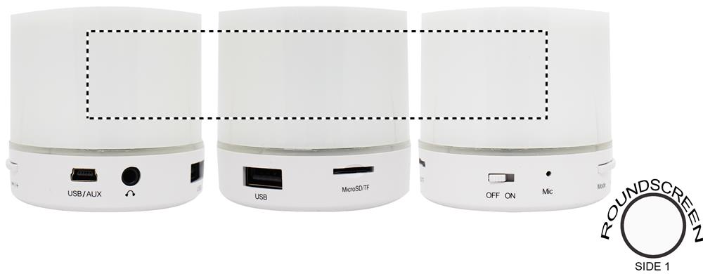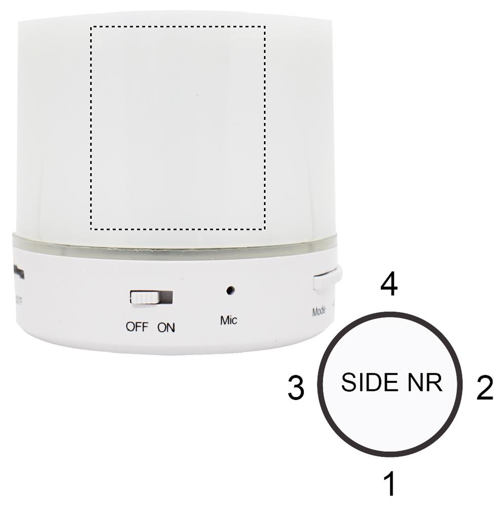 2.1 belaidis garsiakalbis su LED šviesos indikacija iš ABS. 3 spalvos keičiasi šviesa. Komplekte 1 įkraunama ličio 450 mAh baterija. Yra SD kortelės prievadas ir AUX/USB laidas. Skambinimo laisvų rankų funkcija. Išėjimo duomenys: 3W, 4 Ohm. Žaidimo laikas apytiksl. 2h.