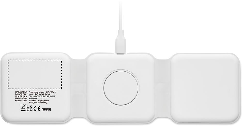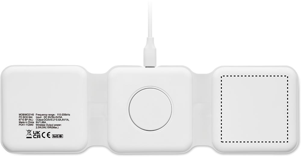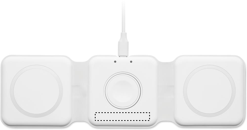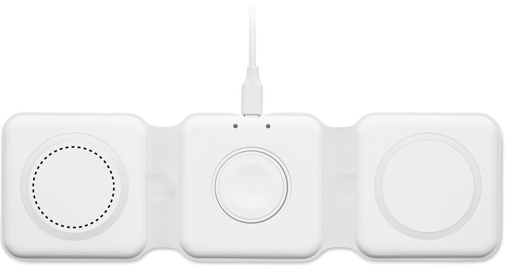 3 viename sulankstoma ABS įkrovimo stotelė. Turi 3 belaidžio įkrovimo taškus (15W). Įvestis: du viename C ir A tipo. Suderinamas su visais QI įrenginiais, pvz., naujausiais Android, iPhone® 8, X ir naujesniais. Taip pat suderinama su iWatch.