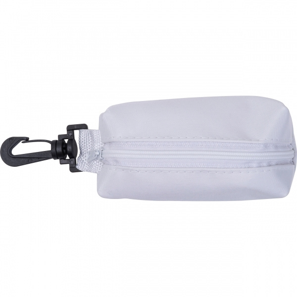 Poliestera maciņš ar rāvējslēdzēju, plastmasas karabīnes āķi un astoņiem dažādu krāsu zīmuļiem. Jūsu logotips ir uzdrukāts uz maciņa.