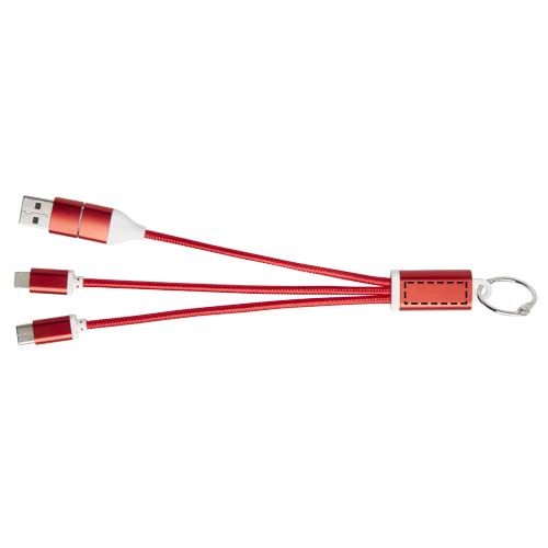 Metāla 4-in-1 otrreizēji pārstrādāta alumīnija uzlādes kabelis ar atslēgu piekariņu, Sarkans