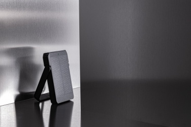 5000 mAh saules enerģijas banka, kas izgatavota no RCS sertificēta pārstrādāta ABS. Kopējais pārstrādātais saturs: 21% no kopējās preces svara. RCS sertifikācija nodrošina pilnībā sertificētu pārstrādāto materiālu piegādes ķēdi. Powerbank izmanto augstas kvalitātes monokristāliskos saules paneļus ar 19% konversijas likmi. Maksas likme ir atkarīga no apstākļiem. Ar integrētu statīva funkciju, lai izmantotu saules paneļus optimālā leņķī. Strāvas banka satur ilgstošu A klases 5000 mAh litija akumulatoru. Ar 10 W bezvadu magnētisko lādētāju, lai uzlādētu tālruni bez kabeļiem. Saules uzlādes ātrums: 5V/130mA. Ieejas veids C: 5V/2A. Izeja: USB A: 5V/2A C tips: 5V/2A. Preces un piederumi bez PVC. Ietver RCS sertificētu pārstrādātu TPE uzlādes kabeli. Iepakots FSC® maisījuma iepakojumā. Reģistrēts dizains®