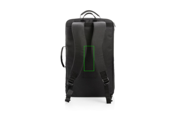 Pārraujiet barjeras, izmantojot konvertējamo mugursomu. Funkcionālā organizācija un biznesa iespējas nodrošina, ka šī mugursoma būs ikdienas izvēle. 4-1 Pārveidojamība: 1. Mugursoma: piestipriniet polsterētās siksnas pie drošiem gredzeniem un pielāgojiet piemērotību, lai izveidotu mugursomas režīmu. 2. Plecs: atsprādzējiet un ievietojiet mugursomas siksnas piedurknes iekšpusē, piestipriniet un noregulējiet plecu siksnu, lai ērti nēsātu uz pleca. 3. Crossbody: kad tas ir pilnībā iepakots, pielāgojiet plecu siksnu tā, lai tā valkātu pāri ķermenim, lai nodrošinātu ērtāku, drošāku, brīvroku režīmu. 4. Rokas turēšana: savelciet mugursomas siksnas un noņemiet plecu siksnu, nēsājiet aiz augšējā vai sānu roktura, lai to varētu turēt rokās. Ar 15,6" speciālu klēpjdatora nodalījumu aizmugurē. Liels galvenais nodalījums ceļojumu precēm un priekšējā kabata ar rāvējslēdzēju visiem tehniskajiem piederumiem. Ieskaitot RFID aizsargātas piedurknes un ratiņu bagāžas siksnu. Nesatur PVC.