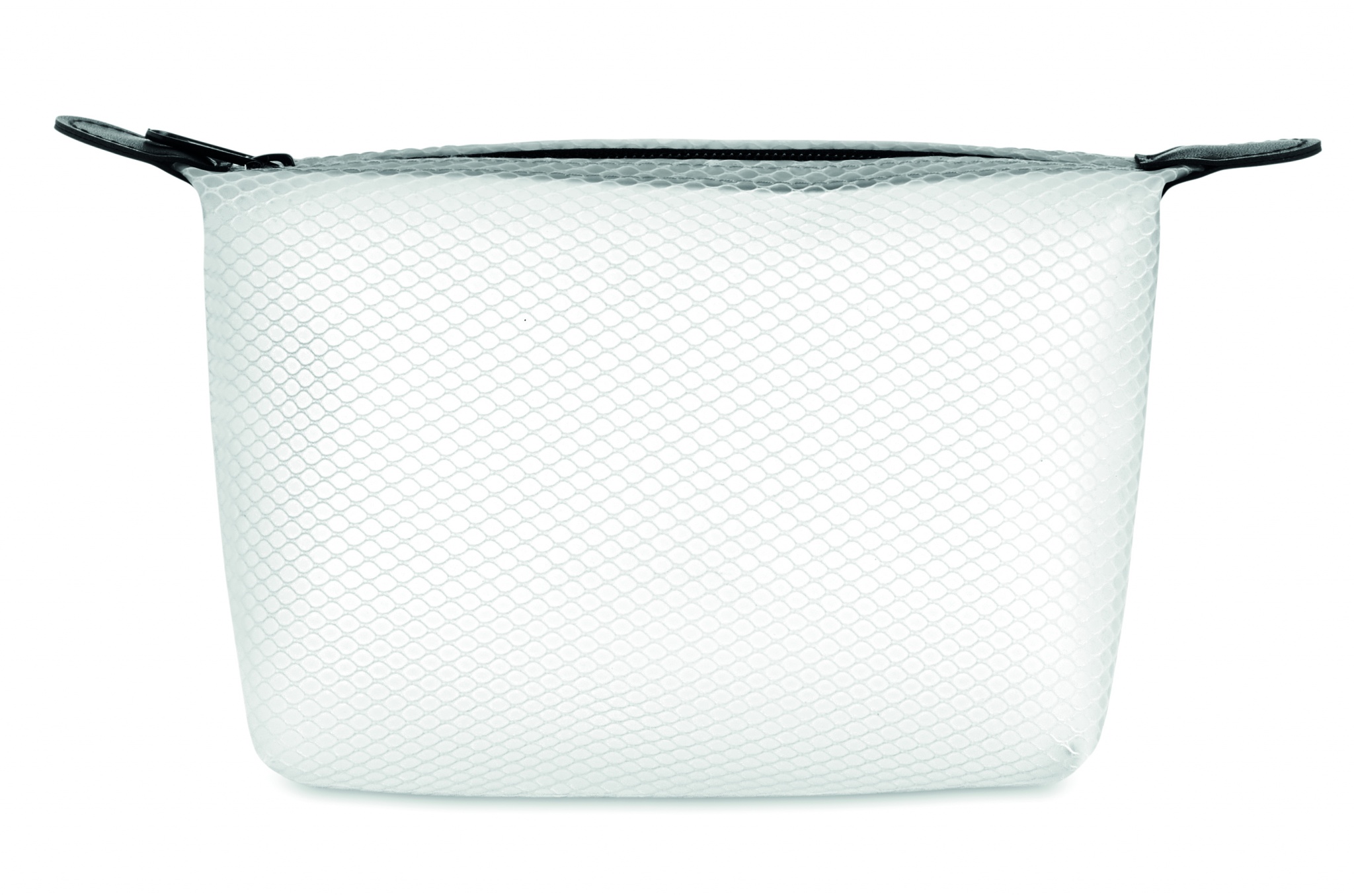 Kosmētikas soma no caurspīdīga EVA sieta ar melnu rāvējslēdzēju.