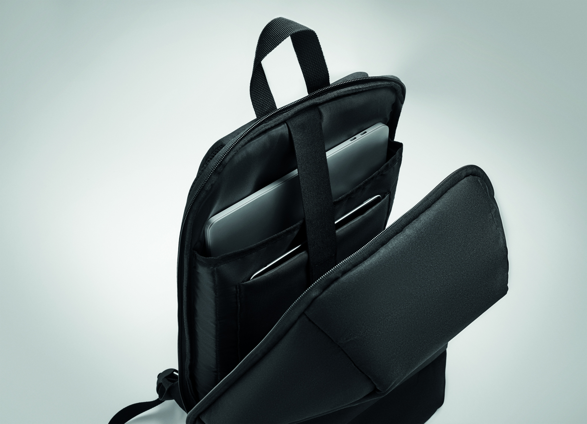 15 inch anti-theft laptop backpack in 600D RPET polyester. Features several compartments of which one additional padded for tablet and more. Padded shoulder straps and main compartment at the back.