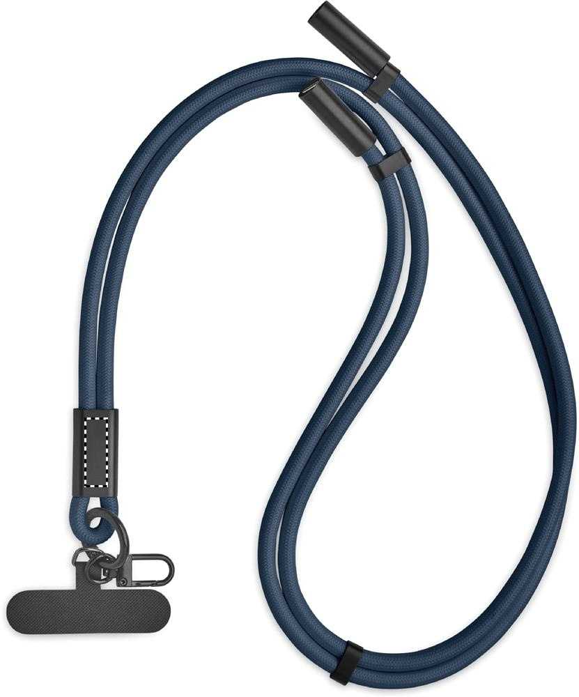Cord lanyard with 60W charging and data transfer cable type-C to type-C in RPET with phone cord holder and key clip.