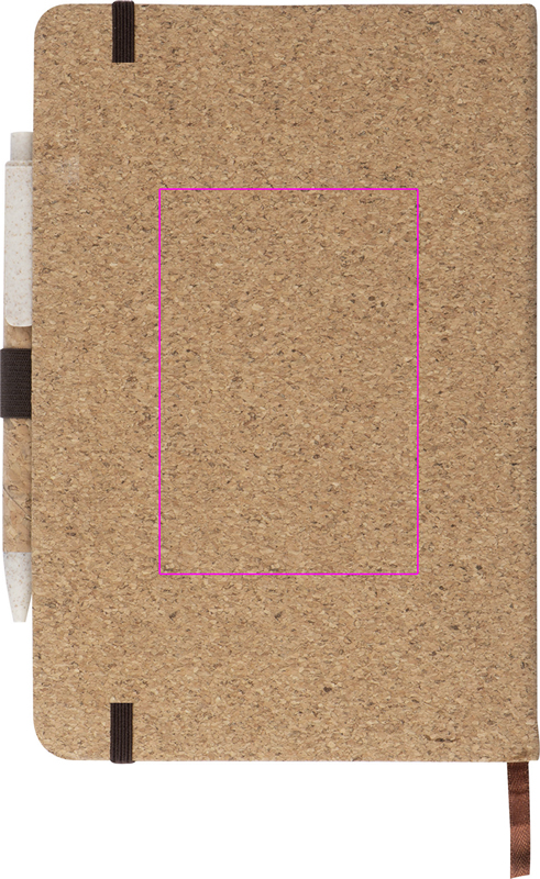 Блокнот формата А5 в пробковой обложке со 160 страницами в точку, эластичным ремешком, петлей для ручки и шариковой ручкой из пшеничной соломы с пробковым покрытием в картонной коробке. Логотип будет напечатан на книге.