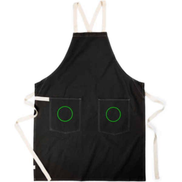 Фартук из 70% сертифицированного переработанного хлопка из хлопковых отходов поставщиков. Волокна, которые обычно считаются непригодными, при соответствующем производственном процессе приобрели желаемые свойства. Этот фартук очень широкий, чтобы обеспечить максимальную защиту. Два больших передних кармана и петля для подвешивания столовых приборов или полотенца.