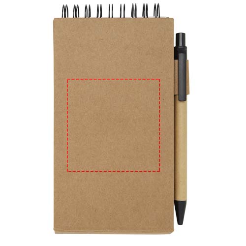 Липкий блокнот с шариковой ручкой. В блокноте 30 листов белой линованной бумаги плотностью 70 г/м2 (8 x 12 см). В комплект также входят 25 разноцветных (5 x 1,2 см) и 25 желтых (7,5 x 7,5 см) клейких листочков, оба типа на бумаге плотностью 70 г/м2. Корпус шариковой ручки изготовлен из переработанной бумаги. Цвет чернил: черный. Длина непрерывной линии: 1000 метров. Размер пера: 1,00 мм.