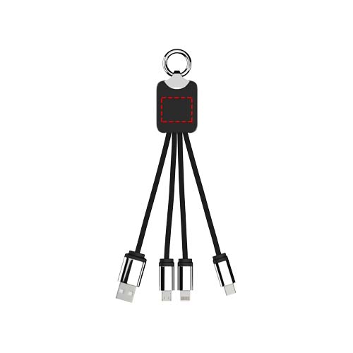 Кабель с soft-touch и металлическим покрытием, а также светящимся логотипом, оснащен тремя разъемами для зарядки (тип C, Android, iPhone). Можно заряжать до трех устройств одновременно. Длина кабелей (со штекерами): 10 см. Упаковка изготовлена из бумаги и пластика вторичной переработки.