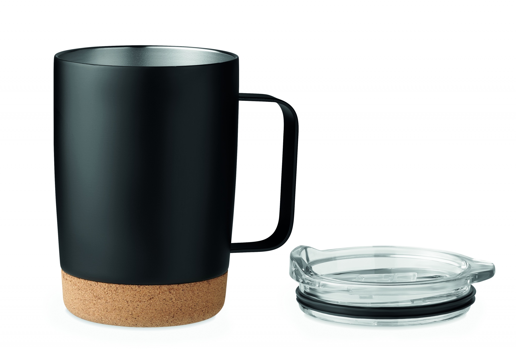 Кружка из нержавеющей стали с двойными стенками, пробковым дном и крышкой с отверстием для питья. Емкость: 300 мл.