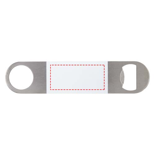 Открывалка для бутылок из нержавеющей стали с большой цветной областью в центре.