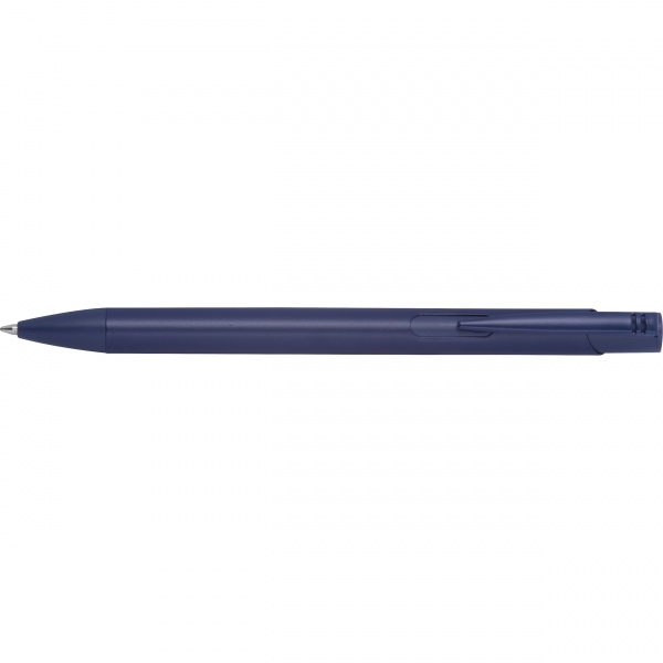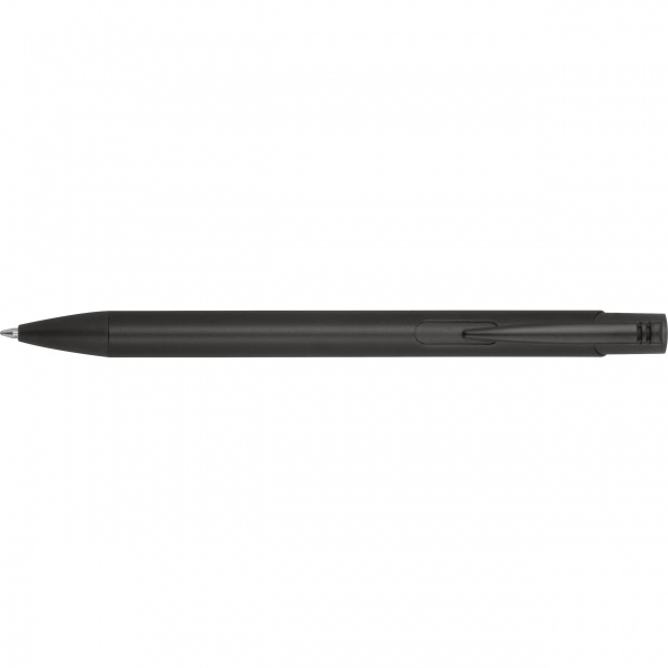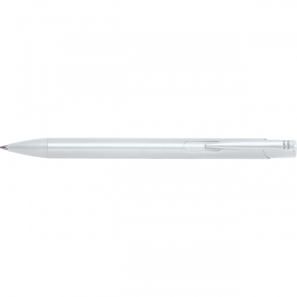 Полноцветная шариковая ручка из переработанного алюминия с синим стержнем увеличенной ёмкости. Ваш логотип наносится под зажимом с помощью лазерной гравировки.