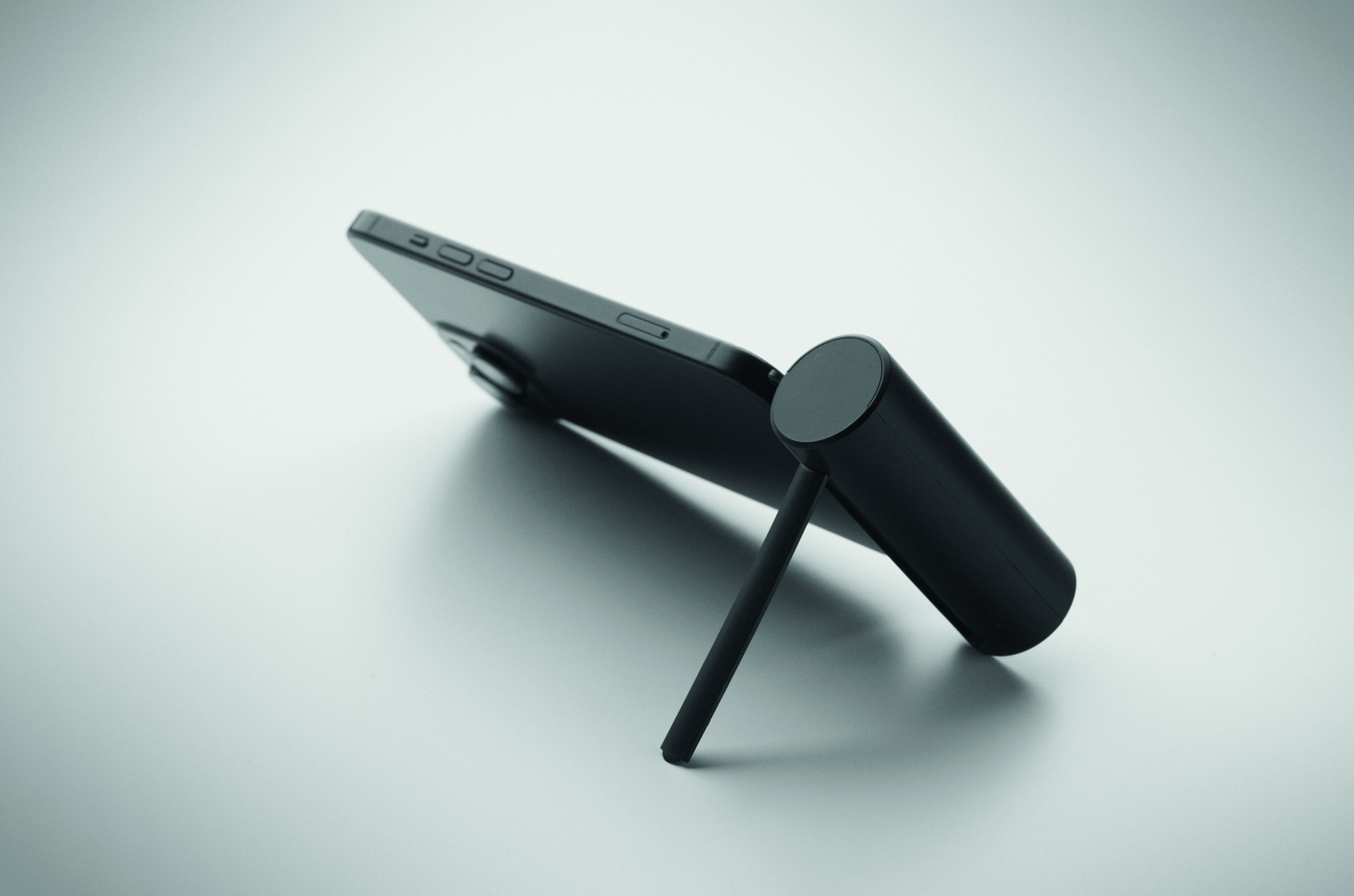 5000 mAh power bank in ABS case with phone stand functionality. Features Type-C input/output and 20W PD fast charging. Compact design for convenient travel use.