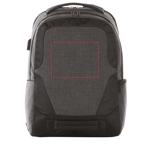 Тонкий рюкзак 17" для ноутбука с разъемом USB и кабелем. Оснащен RFID-защитой в боковом кармане, дополнительными карманами на молнии и ремнем для крепления к чемодану на колесах. Верхняя и передняя ручки и мягкие плечевые ремни удобны в использовании. Реальный цвет рюкзака может незначительно отличаться в зависимости от особенностей принта, окраски и структуры ткани.