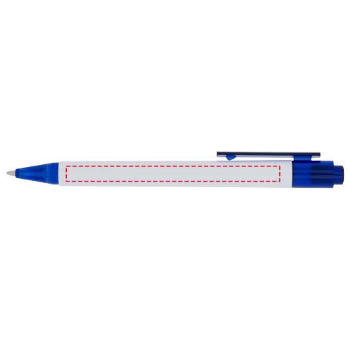 Шариковая ручка Calypso с тонким белым корпусом, полупрозрачным кончиком и зажимом.