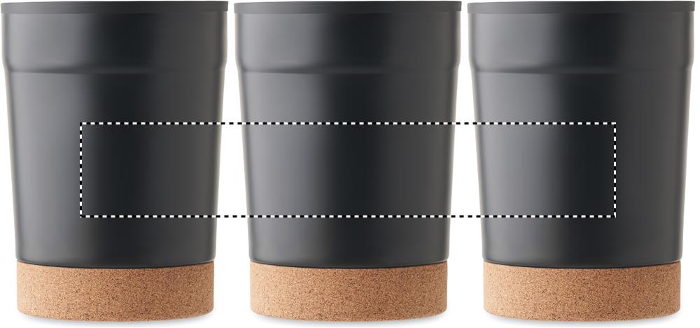 Термокружка с двойными стенками из нержавеющей стали снаружи и полипропилена внутри, пробковое дно и слайдер на крышке. Герметична. Объем: 300 мл.