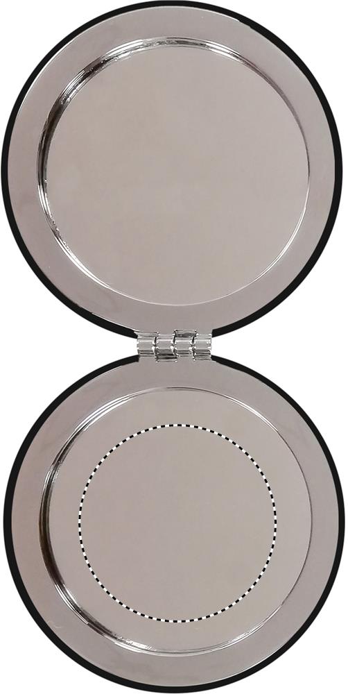 Двойное косметическое зеркальце круглой формы на магните с покрытием из полиуретана.