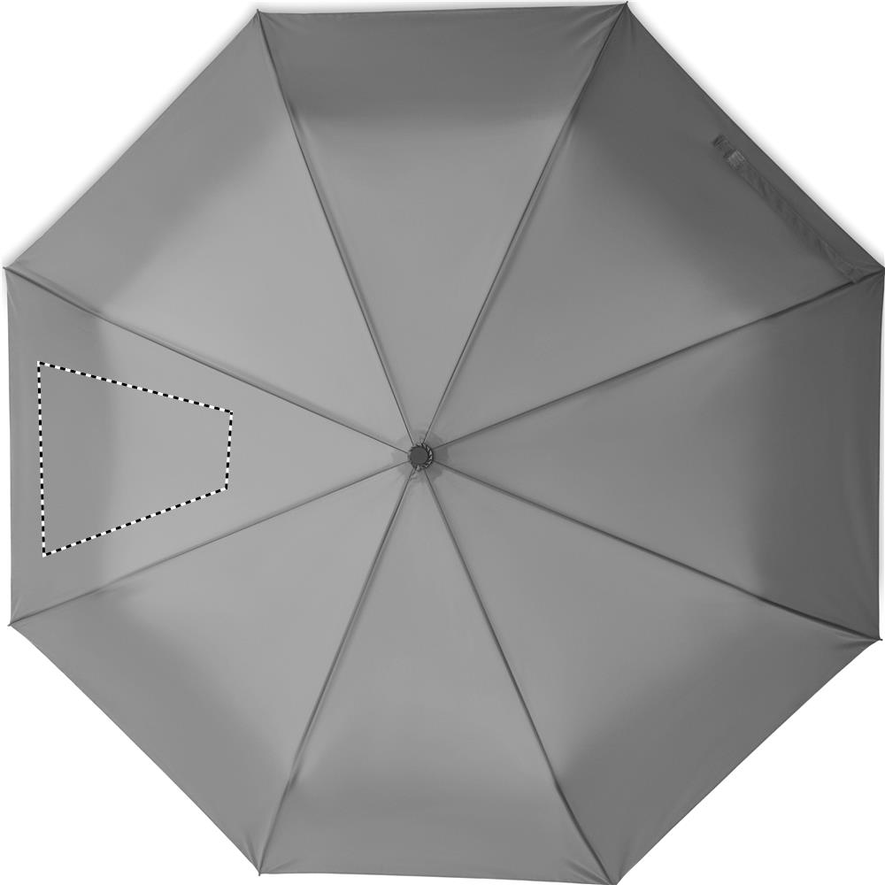27-дюймовый ветроустойчивый зонт автомат в 3 сложения. Материал 190T эпонж, стальной стержень с черным покрытием. Спицы из стекловолокна. Черная полипропиленовая ручка с кнопкой. В комплекте с чехлом.