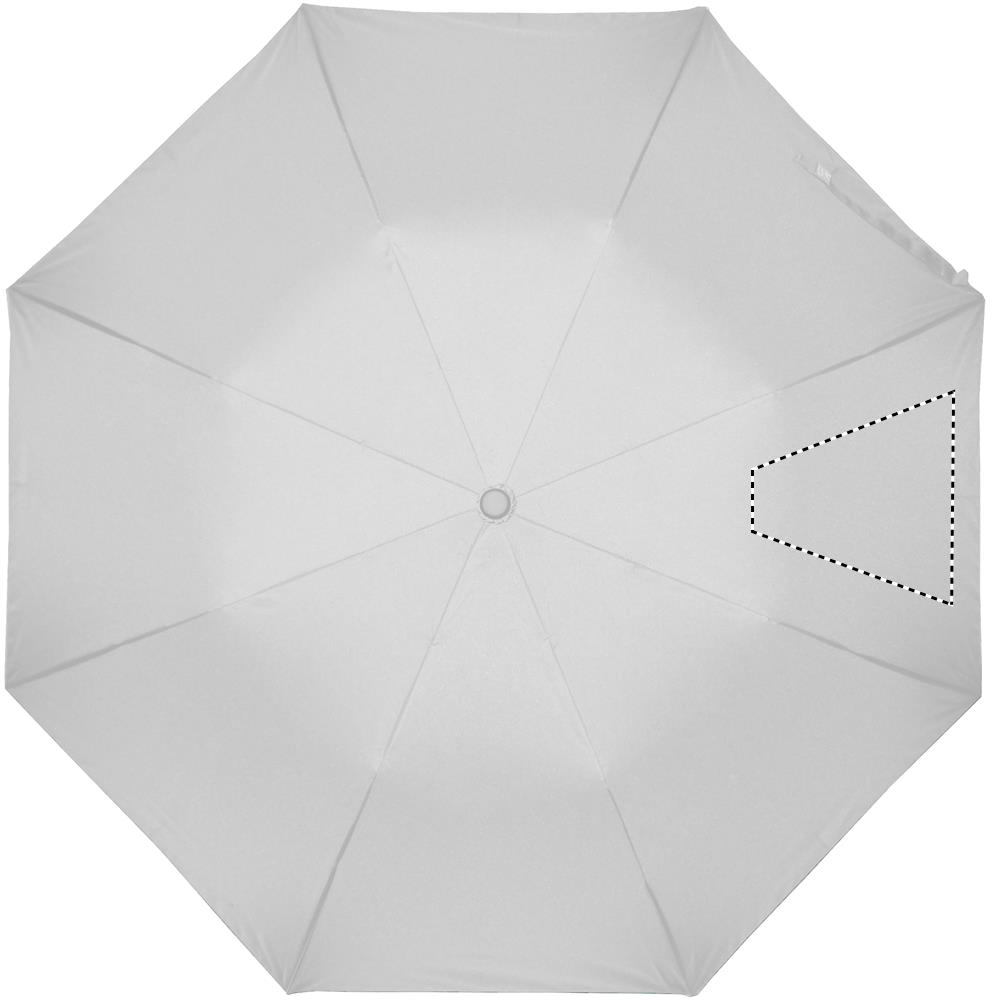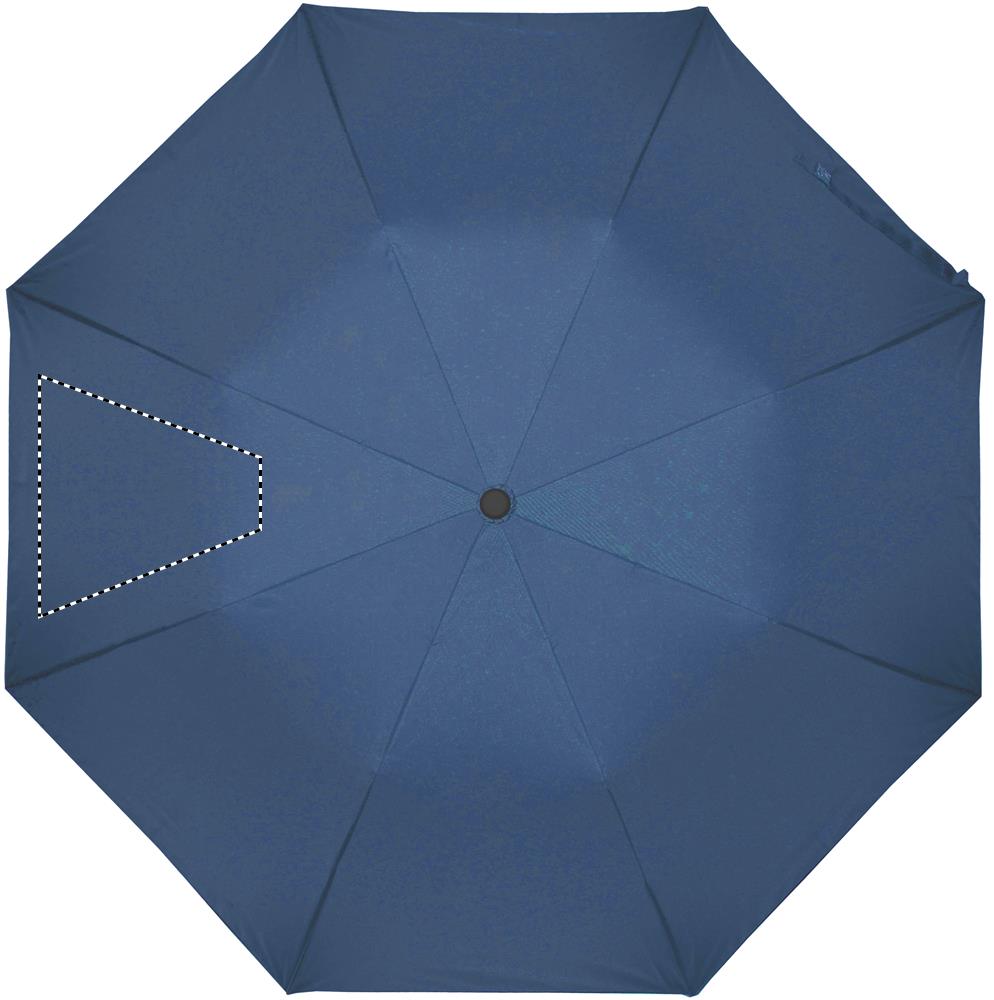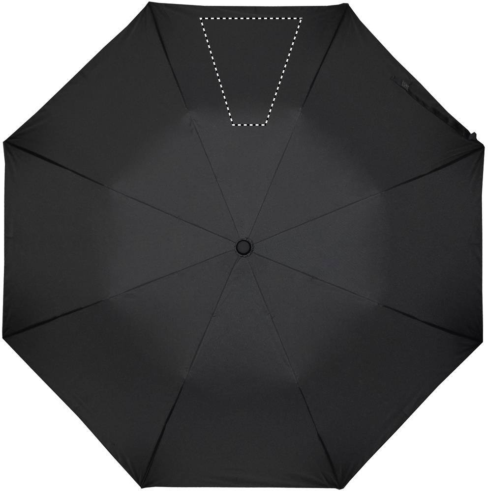 Sektionsparaply 21 tum i exklusivt 190T pongee material med pläterat stålskaft, spröt och spets. Svart gummerat handtag i ABS. Viks ihop i två sektioner. Manuell stängning och automatisk öppning. Inkluderar matchande påse.