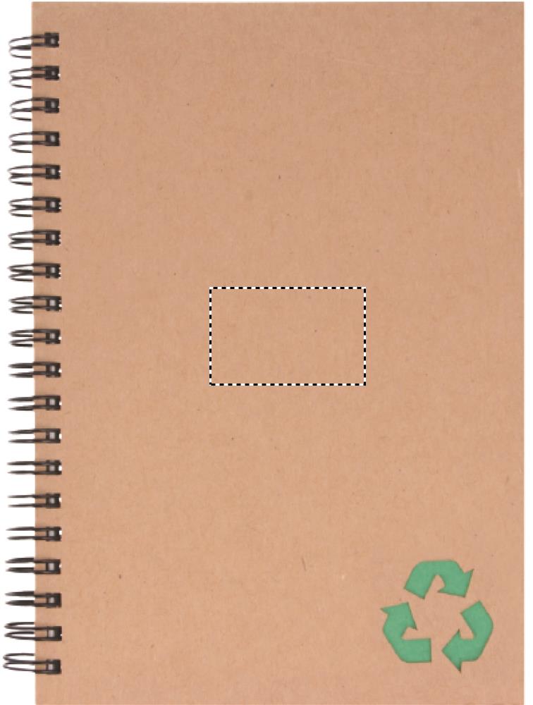 Ringbunden anteckningsbok med omslag i återvunnen kartong. 140st linjerade mineralpapperssidor (70 ark). Mineralpapper är tillverkat av kalciumkarbonat och HDPE (polyetenharts) som används som bindemedel. Den är vattentät och resistent mot fett.