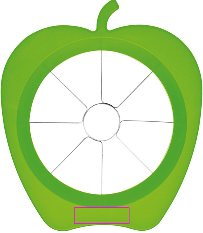 Hälsosamt mellanmål! Som alla vet: ett äpple om dagen, håller doktorn borta! Detta garanteras med denna fantastiska äppelskärare. Fäst, tryck ner och njut av det hälsosamma mellanmålet. Vi kommer att placera din logotyp på kanten. Enkelpackad i polypåse.