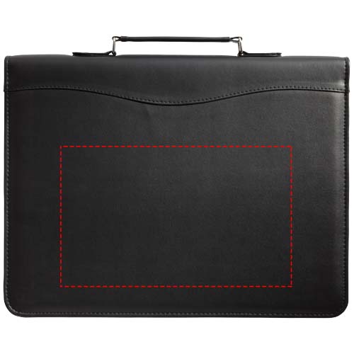 Mapp med handtag och blixtlås, ringpärm, innerficka med blixtlås och dokumentfack. Anteckningsbok med 20 linjerade sidor. Pennor och tillbehör ingår inte.