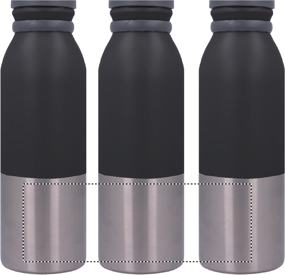 Vattenflaska/termos med dubbelväggad i rostfritt stål med silikon runt om för ett bra grepp. Termosen är läckagefri. Kapacitet: 600 ml. Läckagefritt.