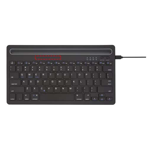 Kompakt QWERTY tangentbord med 78 tangenter. Bluetooth® 3.0 med stöd för två kanaler så att den kan ansluta till två enheter samtidigt. Integrerat dockningsställ för telefon och surfplatta. Tangentbordet är kompatibelt med dator/bärbar dator, surfplattor, mobiltelefoner, smarta TV och andra enheter med Bluetooth® funktion. Driftavståndet är upp till 10 meter. Det inbyggda laddningsbara batteriet på 150 mAh ger minst 40 timmars användning eller upp till 6 månader i vänteläge. Laddningen tar cirka 3 timmar. Levereras i en förstklassig kraftpapperslåda med ett färgstarkt klistermärke.
