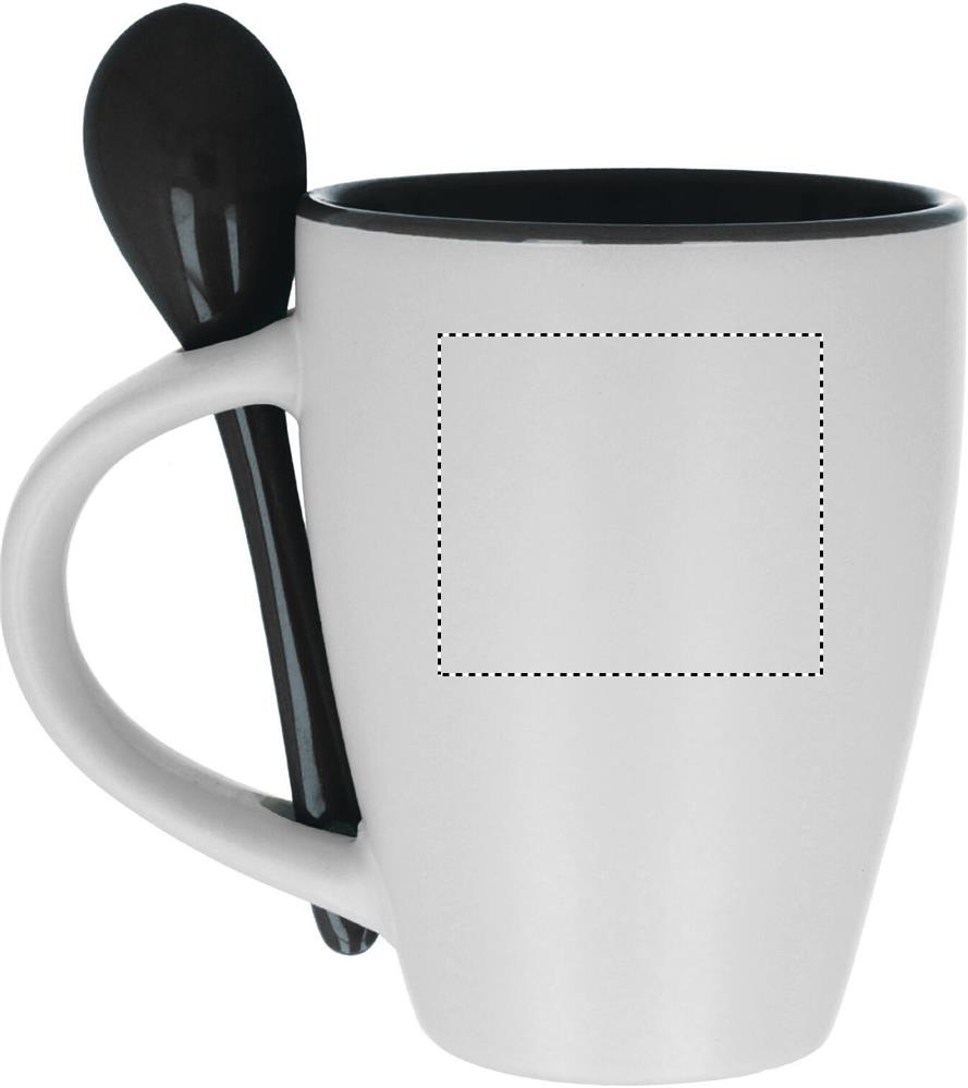 Tvåfärgad keramik kaffemugg med matchande färgad sked. 250 ml.