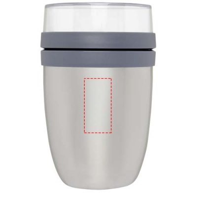 Isolerad lunchlåda med två olika fack för att hålla de olika ingredienserna åtskilda. Båda behållarna har ett separat lock så att ingredienserna inte blandas. Håller mat varm i 10 timmar och kall i 16 timmar. För att se till att maten förblir varm eller kall så länge som möjligt, rekommenderar vi att du sköljer lunchlådan med varmt eller iskallt vatten innan du fyller på den. Innehållet i den översta transparenta behållaren är 200 ml, vilket innebär att den kan hålla ca 75 gram fast föda. Bottenbehållarens kapacitet är 500 ml. Tillverkad av slitstarkt material och utsidan av lådan förblir sval och torr. Handtvätt rekommenderas. Plastdelarna i locket kan läggas i diskmaskinen. Läckagesäker. BPA-fri. 2 års garanti från Mepal.