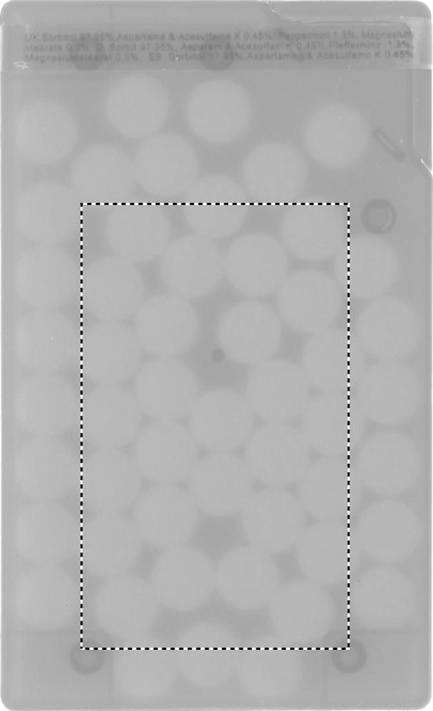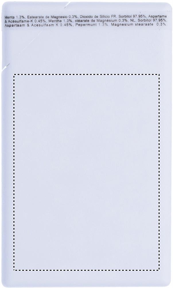 Minttabletter i en behållare lika stort som ett kreditkort. Innehåller 8 gram minttabletter.