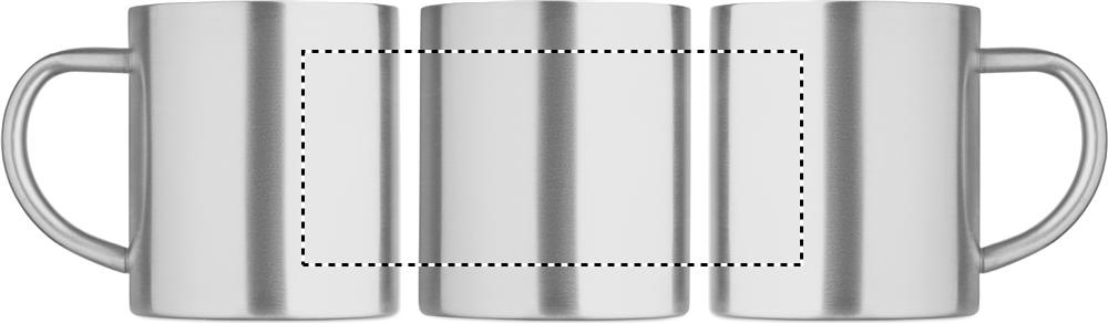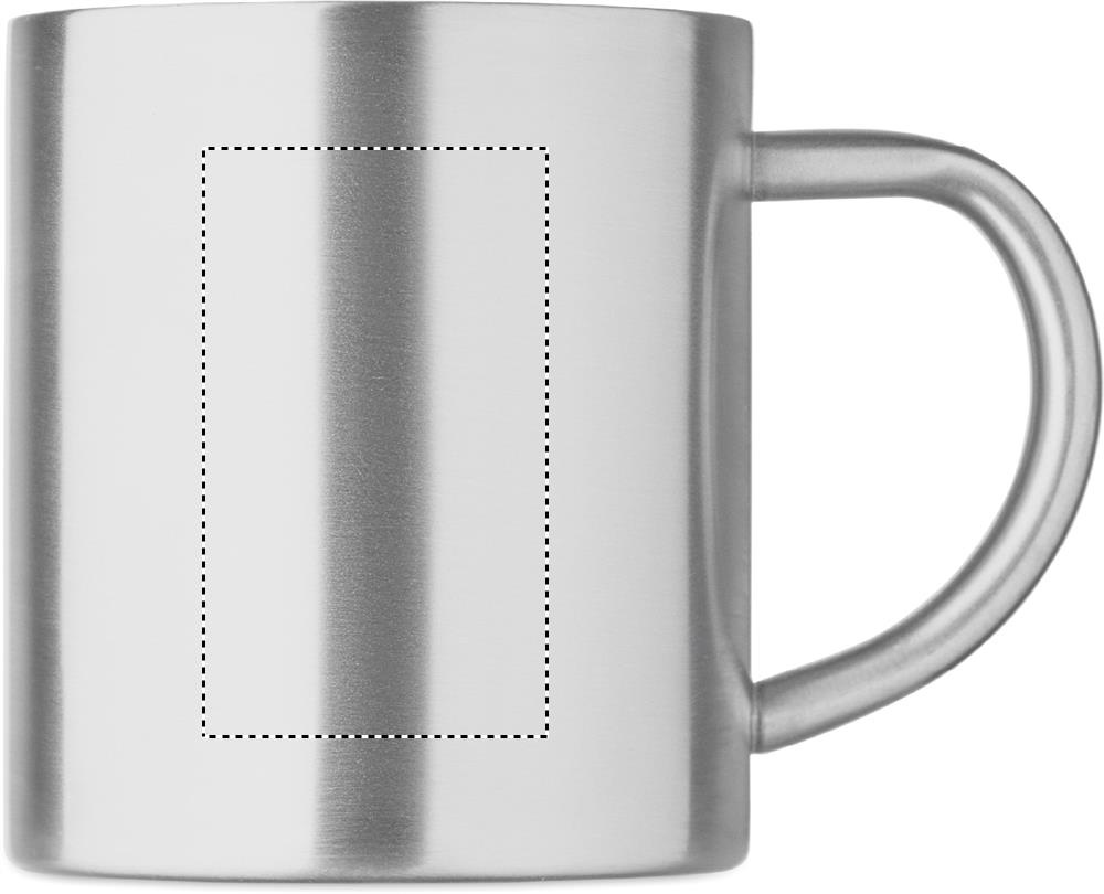 Dubbelväggig mugg i återvunnet rostfritt stål (90% återvunnet rostfritt stål och 10% rostfritt stål). Volym: 260 ml.