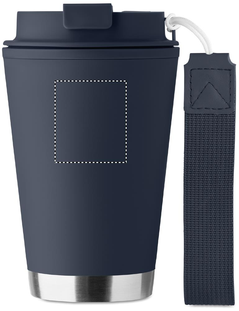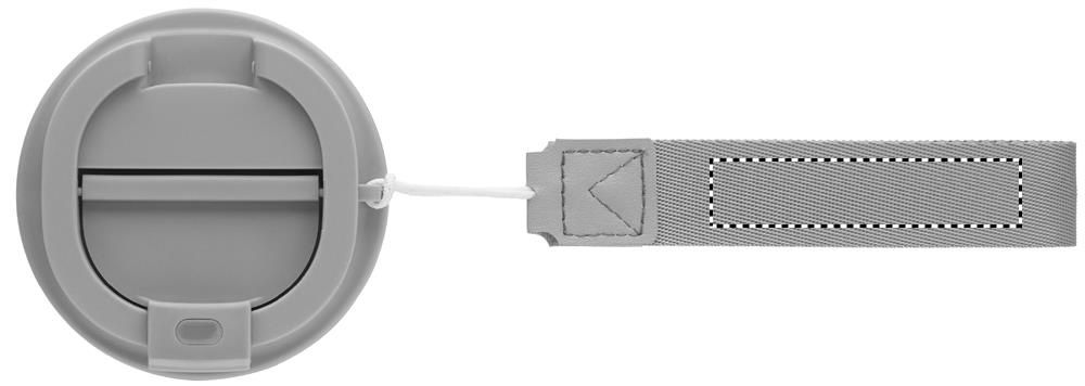 Dubbelväggig mugg med PP inner vägg, återvunnen PP yttervägg, återvunnen rostfri ståldetalj och RPET handledsrem. Kapacitet: 300 ml.
