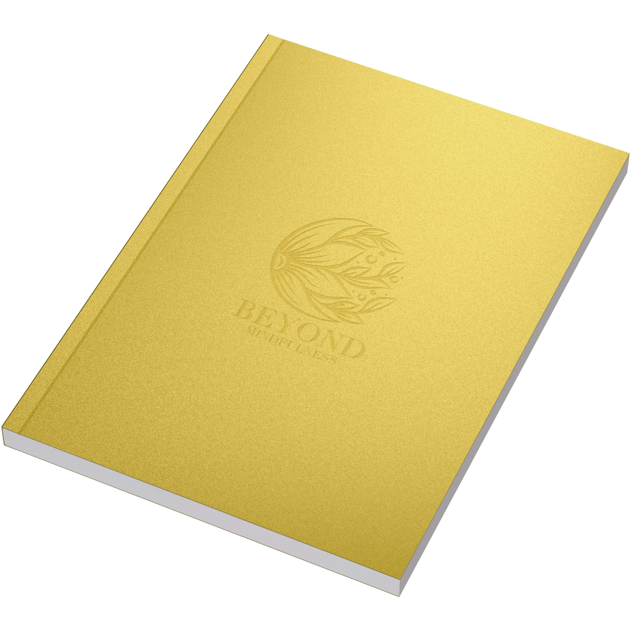 Anteckningsboken Novella Austen A5 med mjukt omslag är en fantastisk produkt tack vare sin mångsidighet. Anteckningsboken innehåller 100 ark 80 g/m2 återvunnet vitt papper. Arken är blanka som standard, sen kan du lägga till din egen design på arken, t.ex. linjer, rutor eller din egen design. Omslaget är tillverkat av 300 g/m2 card i en rad olika färger. För en riktig ”wow-effekt” kan du också lägga till ett fullfärgstryck på hela omslaget (framsida, baksida, rygg). Tillverkad i Storbritannien.