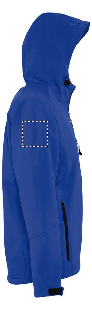 SOL'S REPLAY HERR, SOFTSHELL MED HUVA HERR, 94 % polyester, 6 % elastan, Fodrad med fleece : 100 % polyester, 3 lager, 8000 mm vattentätt membran med andningsförmåga SOFTSHELL 340, 2 sidofickor med dragkedja och 1 bröstficka med dragkedja, Justerbar dragsko i midjan, Justerbara ärmslut med självhäftande knäppning, Huva med dragsko för matchande storlekar, se storlekstabellen i avsnittet om produktdokumentation.