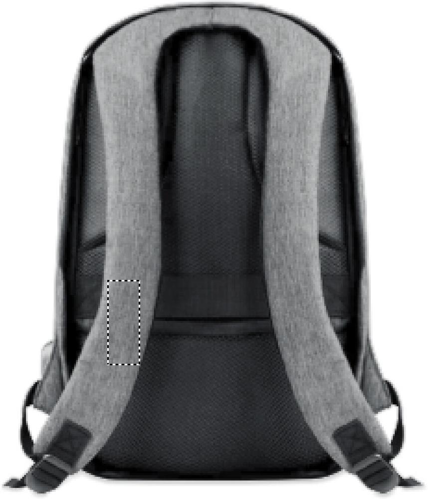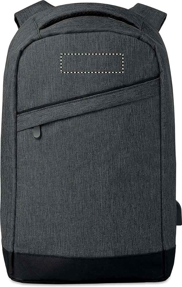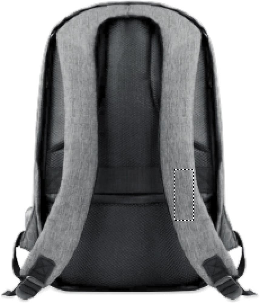 Ryggsäck i 600D duoton nylon med vadderad axelrem, ficka för 13 tums laptop och en laddsladdsingång.