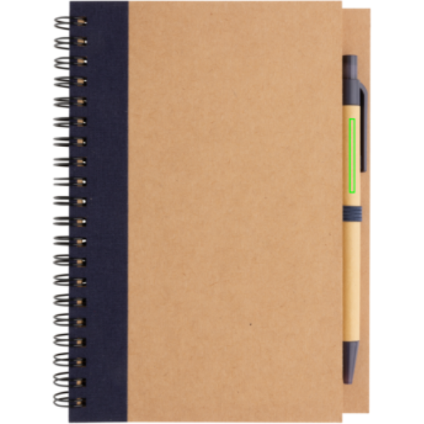 Logotrade kampanjprodukter bild: Spiralbunden anteckningsbok i kraftpapper, med penna