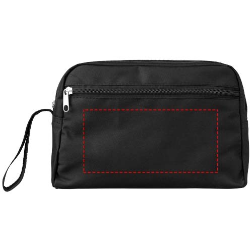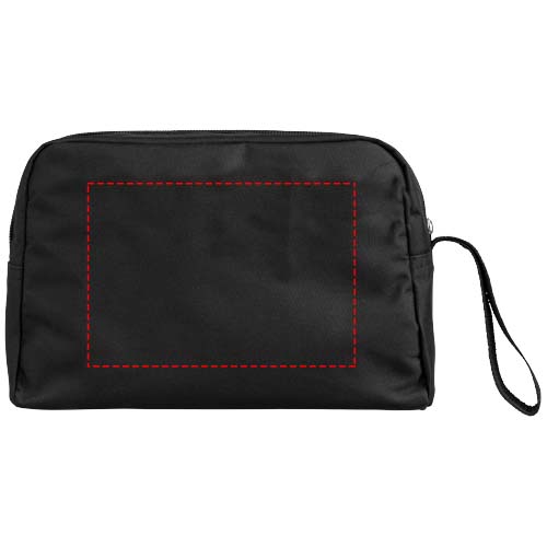 Toalettväskan Transit har en enkel konstruktion och är därför idealisk för resor. Stora produkter som schampo och parfym ryms i huvudfacket med dragkedja, medan den främre dragkedjeförslutningen förvarar småsaker som speglar eller tandpetare. Toalettväskan är tillverkad av 300D polyester, är lätt och enkel att hålla ren. Dessutom erbjuder toalettväskan Transit flera tryckalternativ för logotyper och andra budskap.