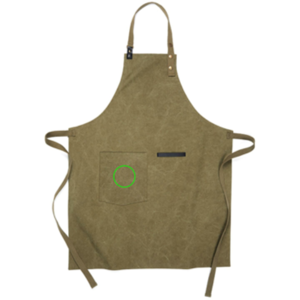 Förkläde tillverkad av 87 % verifierat återvunna material. Det här stilrena förklädet är ett praktiskt kökstillbehör med en underbar design. Förklädet har en ficka på framsidan och en ögla för att hänga redskap eller kökshanddukar, så att du har allt till hands när du är mitt uppe i matlagningen. Förklädet har ett mjukt och justerbart nackband för ökad komfort. Tillverkad av GRS (Global Recycled Standard) certifierade återvunna material. GRS certifiering säkerställer en helt certifierad leveranskedja av de återvunna materialen. Totalt återvunnet innehåll är baserat på total produktvikt. Denna produkt innehåller 87 % GRS certifierad återvunnen polyester/bomull.